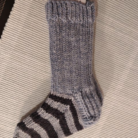 Käsin neulotut lasten villasukat vihreä / raidallinen