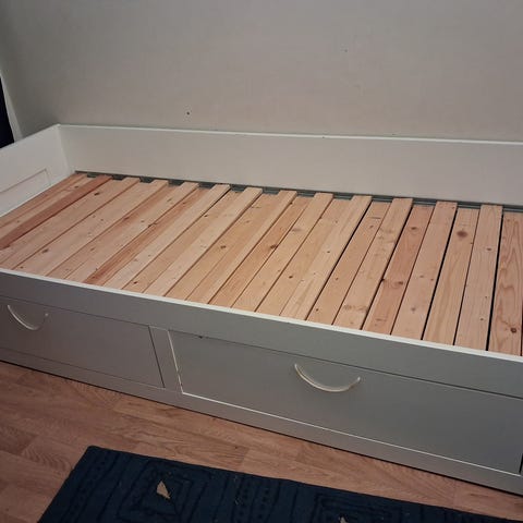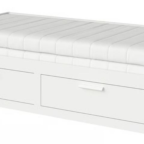 Hyväkuntoinen valkoinen Ikea BRIMNES sohvasänky ilman patjoja.