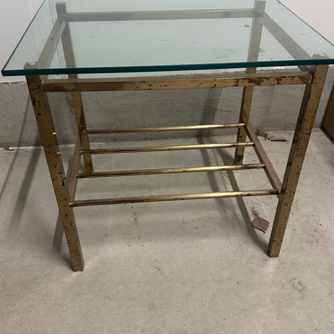 2 kpl pieniä lasipöytiä messinkirungolla vaikka yö- tai sivupöydiksi. Pöydät antiikkia, joten eivät ihan uuden veroisia ole, mutta ehjiä ja siistejä, ilman naarmuja tai kolhuja. Hinta per kpl. mmm.