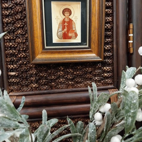 Ikoni type painokuva taulu lasipinta puukehykset "pyhä"panteleimon