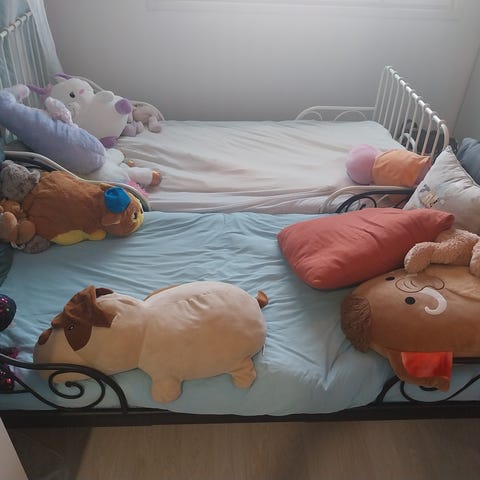 Myydään IKEAn MINNEN kaksi kpl kaunista metallirunkoista valkoista jatkettavaa/säädettävää lasten sänkyä. Toisessa puusälepohjan yksi pala ollut poikki, laitettu kiinni ruuvilla. Ei patjoja. Tästä hyvät kestävät sängyt kotiin/mökille/mummulaan. Myydään mieluiten pakettina yhteishintaan 45€ molemmat tai yksitellen 25€/kpl. Purettu siististi kahteeen pahvilaatikkoon, helppo kuljettaa mukanaan pois. Saa tulla katsomaan, sovitaan tarkemmin ☺️