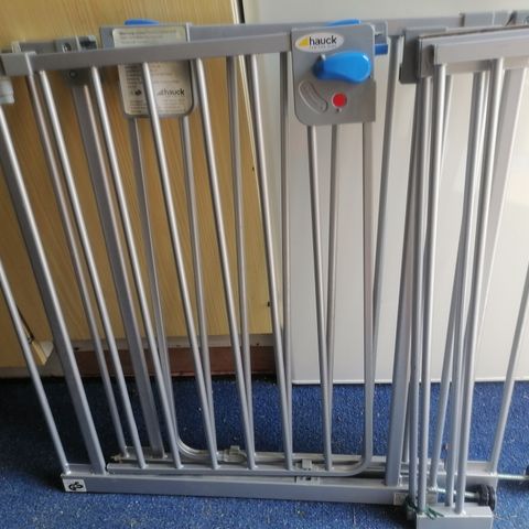 Myydään hyväkuntoinen Hauckin Open’n Stop -turvaportti (75-80 cm) ja jatkopala 21 cm. Kiinnitys ainoastaan Y-paloilla (eli esim. portaikon kaiteisiin, ka. kuva paloista).