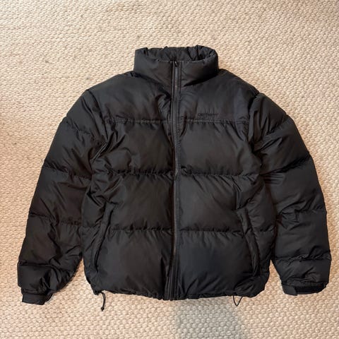 Carhartt Wipin fairmount takki koossa S. Istuu väljänä, eli todellisuudessa lähempänä kokoa M. Itse olen 180/80 ja istuu paikkapaikoin hieman tiukkana.
