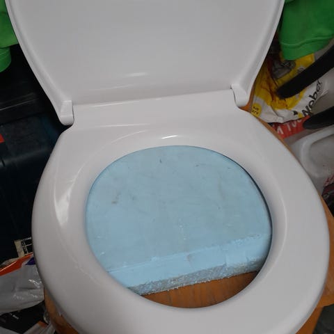 Uusi Lidlistä ostettu wc pöntön kansi. Ei käynytkään meille. Avattu vain ja todettu vääräksi.
