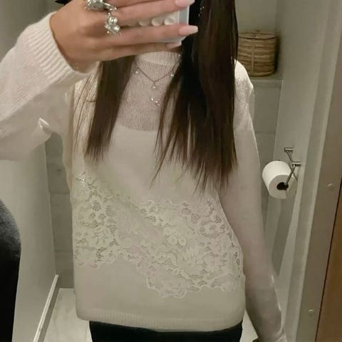 Myydään Zaran suosittu valkoinen pitsineule. Koko s, mutta sopii enemmän xs koolle. Eka kuva inspo, loput minun ottamia. 🤍