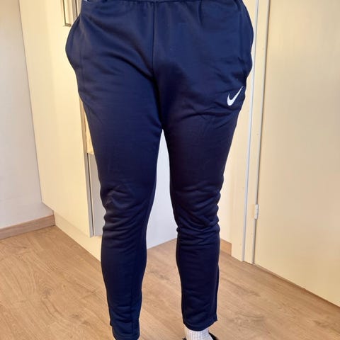 Myydään Nike Dri-FIT -materiaalista valmistetut urheiluhousut mustan ja keltaisen sävyissä. Housut ovat kevyet ja hengittävät, ja sopivat hyvin treeniin, lenkille tai rennoksi vapaa-ajan vaatteeksi. Sivujen väriraidat ja vetoketjutaskut tuovat sporttista ilmettä. Koko vastaa arviolta M-kokoa. Käytetty, mutta edelleen täysin käyttökelpoinen ja siisti peruskunto. Vain nouto.