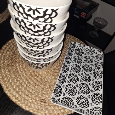 Martinex kulhoja 4 jälkiruoka tai murokulhoa, valmistettu keraamisesta materiaalista. Kulhoissa on sinivioletti kukkakuviointi. Soveltuu keittiövälineeksi, kuten ruoan tarjoiluun ja säilytykseen.