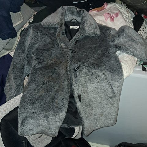 Myydään paristi käytetty, todella siisti luonnonvalkoinen tekoturkistakki.