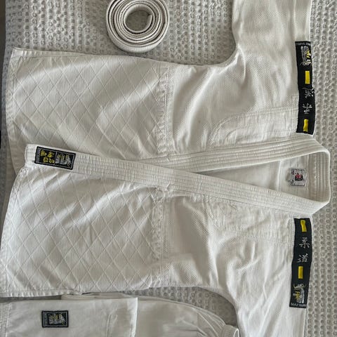 Alkaako alkeiskurssit, mutta puku puuttuu? Ohessa kamppailupuku/gi, joka on kokoa 170. Vyötä ei välttämättä tähään hätään ole, mutta sitä voi kysellä, josko löytyy vielä.