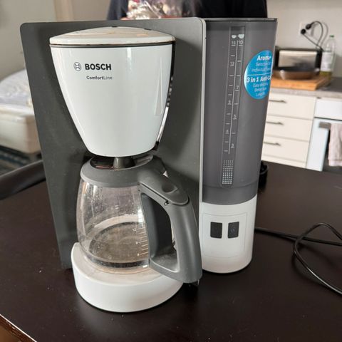 Bosch valkoinen käytetty kahvinkeitin. Toimii moitteettomasti mutta pinttymää osissa.
