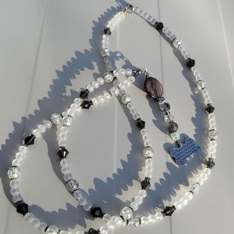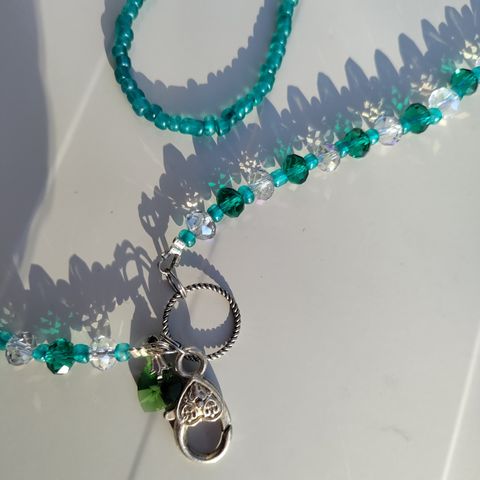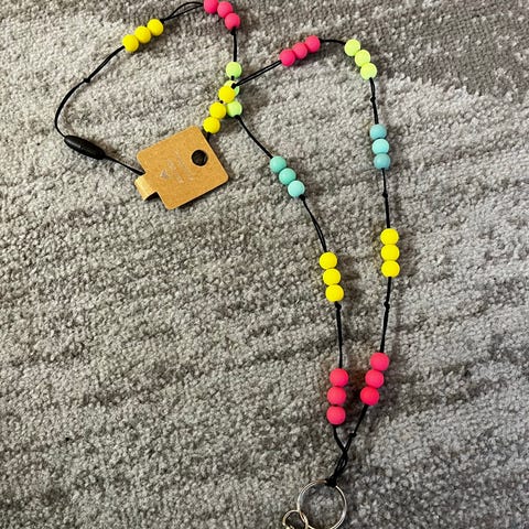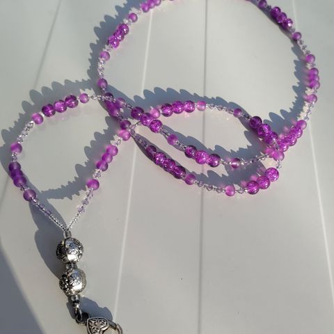 Käsintehty vaaleanpunainen avainnauha helmisomisteilla 🩷