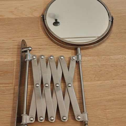 IKEA peili, jossa on musta puurunko. Peili on seisova ja siinä on ketjukiinnitys takana. Kehyksessä on pieniä käytön jälkiä.