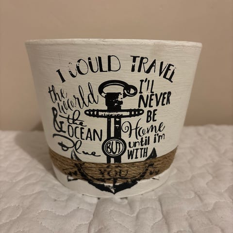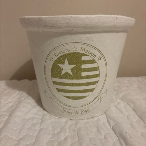 Pieni RM-ruukku, johon saa halutessaan tekokasvin mukaan. Korkeus ilman kasvia on 8 cm, halkaisija 7 cm.