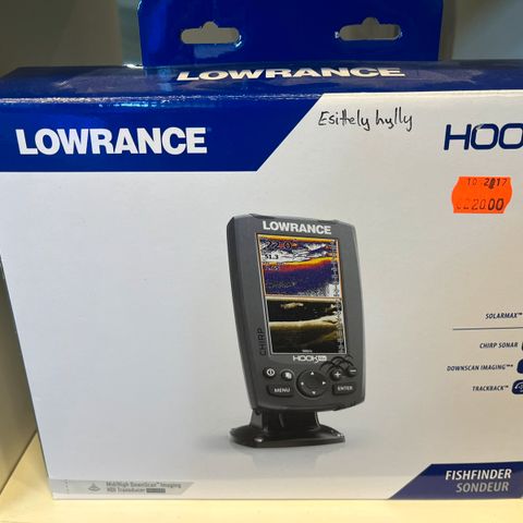 Lowrance hook 4 kaikuluotain anturi ja akku.