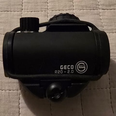 Kiinalainen punapistetähtäin 4 moa pisteellä. Tähtäimessä valittavana 11 kirkkausasetusta. Kiinnitys picatinny- kiskoon. Mukana myös korotuspala. Tämän kanssa ei ole ammuttu, eli on hyvässä kunnossa.