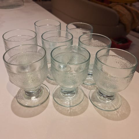 Hyväkuntoiset ja täysin ehjät Riihimäen lasin Pub-lasi ja Lantrinkipullo, kirkkaat. Lasi: halkaisija Ø 6,5 cm, korkeus n. 9,5 cm. Yhteishinta 5 € tai erikseen 3 € kpl.