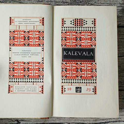 Kalevala teos, painettu Porvoossa v. 1955. Nahkaselkä ja kulmat. Säilytys kotelossa. Siistikuntoinen, ei merkintöjä eikä omistuskirjoituksia. Nouto käteismaksulla.