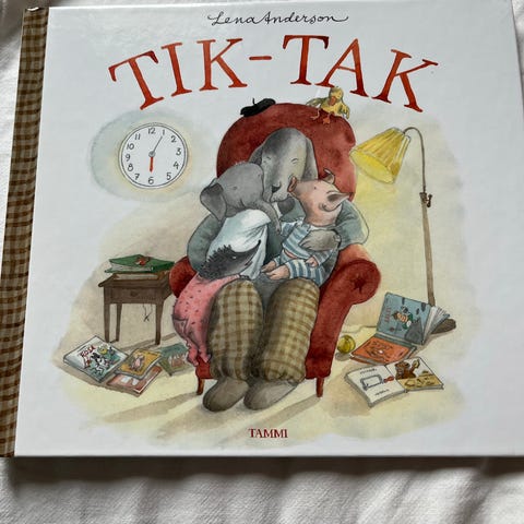Tik tak kello tikittää. Kirja, jolla voi opetella kellonaikoja ja tulkitsemaan kelloa. Oikein siisti kunto. Paksut pahvisivut ja viisarit kovaa muovia.