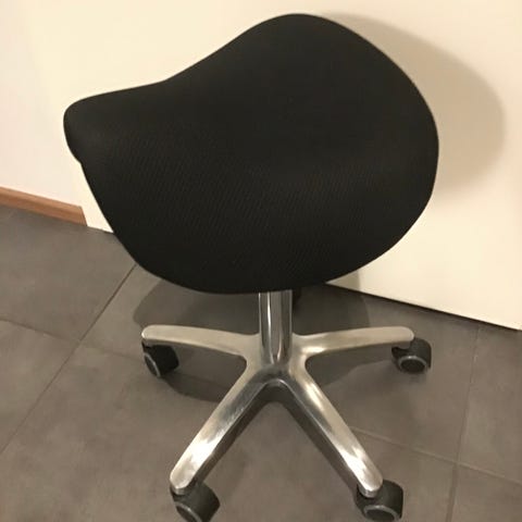 Hyväkuntoinen säädettävä satulatuoli. Pyörät pyörii moitteitta. Säilytetty häkkivarastossa.