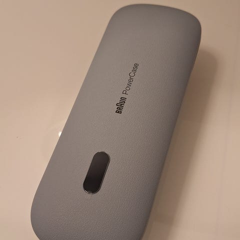 Kuvan mukainen matkasetti. Kotelo toimii latauskotelona ja tarvittaessa vara-akkuna matkustaessa. Voi liittää USB:llä vaikka puhelimen.