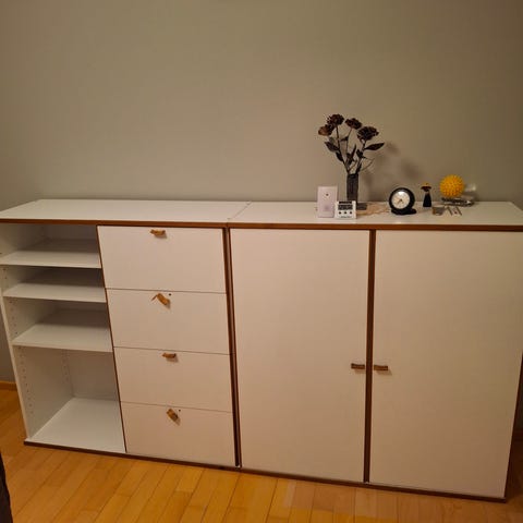 2 kpl kaappia. Yhden mitat 36/90/93. Nahkaiset vetimet voivat olla rikki tai hapertuneet, mutta vaihtamalla paranee. Myyn 2 kpl:n settinä hintaan 60,-. Nouto Martinlaaksosta.