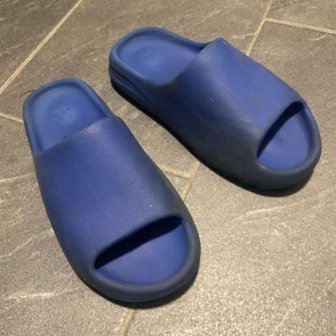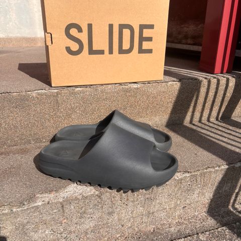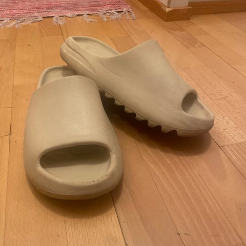 Käytetyt mutta hyvin säilyneet Yeezy Slidet, ei ole näkyviä käytön jälkiä. Slidet ovat aidot - tilattu GOATista👊