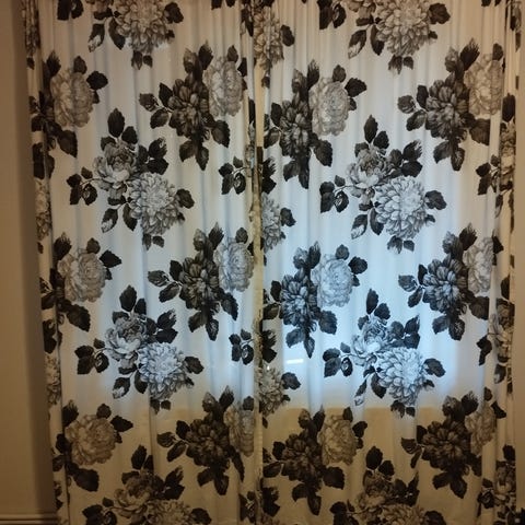Vallilan hyväkuntoinen sivuverho. Kamera hiukan vääristää väriä, todellisuudessa taustaväri hieman tummempi ja kylmempi.