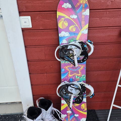 Salomon Grace 120 cm lumilauta. Ja Nitron siteet. Pinnassa jälkiä mitä tullut hississä jonottamisesta. Flex 2