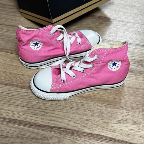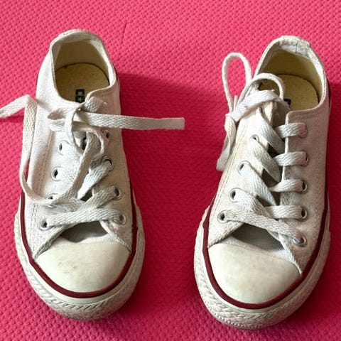 Nahkaiset, mustat Converse-merkkiset lasten kengät.