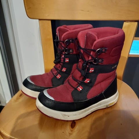 Hyväkuntoiset ja lämpimät Reiman talvikengät. Kärjessä hieman pinnan kulumaa
