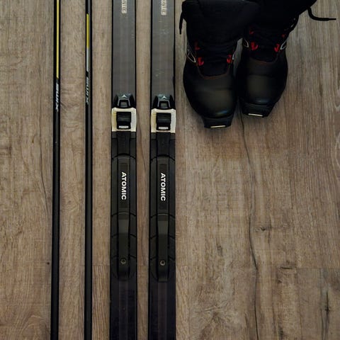 Hyväkuntoiset ja vähän käytetyt välineet. Helppoa hiihtoa, ei tarvitse voidella pitovoidetta eikä neulaset tartu suksen pohjiin.