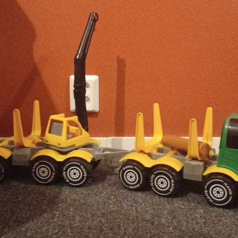 Hyväkuntoinen ja siisti iso tukkirekka. Yksi tukki häviksissä.