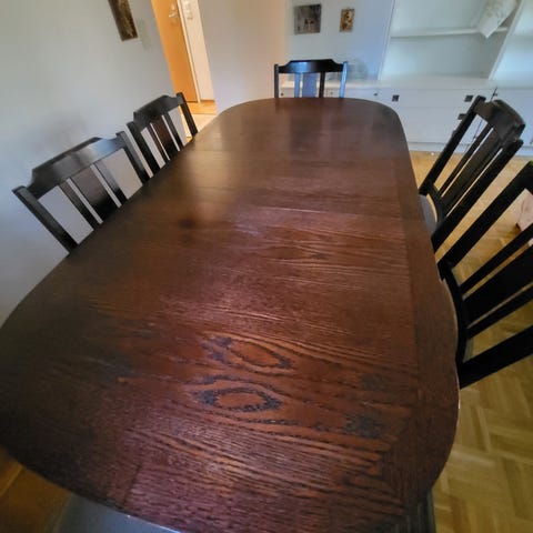 Hieno puuviiluinen lepopöytä kääntyvillä tuoleilla