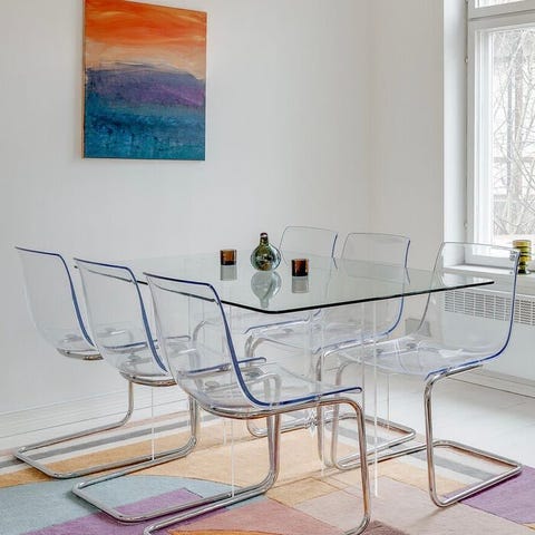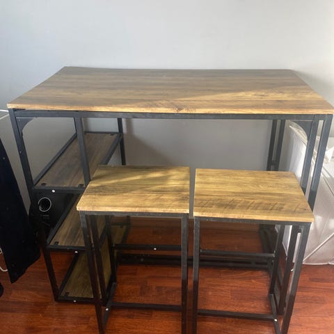 Myydään ylimääräiseksi jääneet Ikeasta ostetut Tobias -tuolit ja Maskusta ostettu pöytä. Noin viisi vuotta sitten ostettu. Pöydän pinnassa on muutama syvempi naarmu. Myydään settinä. Kuvassa oleva lamppu ei kuulu kauppaan. Sijatsevat viidennessä kerroksessa, mutta kerrostalossa on iso hissi, johon mahtuvat. Omat kantajat mukaan. MMM