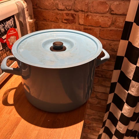 Annetaan 5 l kattila. Ehjä, saattaa löytyä kansikin mukaan. Luovun kun ei toimi induktiolieden kanssa.