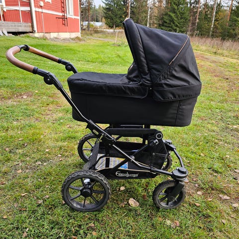 Työntöaisassa hieman langat sivuilta rispaantunut, ei vaikuta käyttöön. Pieniä naarmuja näkyy, kun oikein syynää. Muuta vikaa en rattaissa keksi.