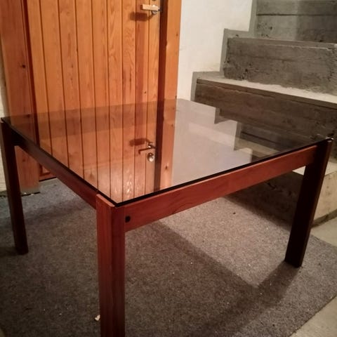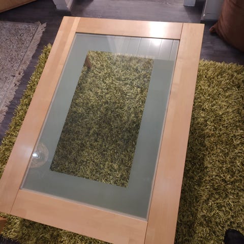 135x75 kokoinen lasinen sohvapöytä jossa alatasot vaalean puun värinen mdf. Pöytä on tosi siisti, yksi pieni naarmu lasissa mutta ei edes näy käytössä. Menee osiin kuljetusta ajatellen. Nouto Kuurnasta. Kuvissa lasiin osuu heijastuksia. Nouto ja saa myös osiin.