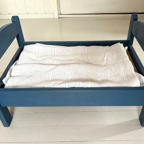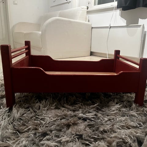 Sängyn mitat: pituus n. 50cm, leveys n. 24cm, korkeus n. 21cm