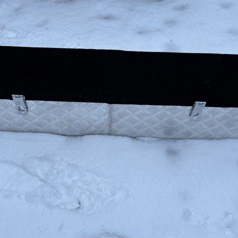 Alumiininen säiliö, mahdollisesti veneen polttoainetankkina ollut. Mitat: P145cm L70cm K30cm