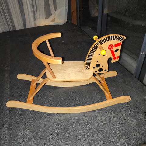 Siistikuntoinen yksisarvis -keinuhevonen, jossa ääninappulat molemmissa korvissa. Toisesta nappulasta tulee laukka - ääni ja toisesta hirnahdus- ääni. Nouto Kurikan keskusta.