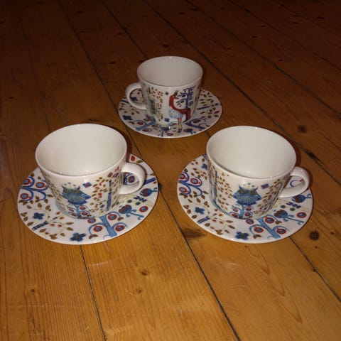 Iittala Taika kahvikuppi ja lautaset, 4 kpl