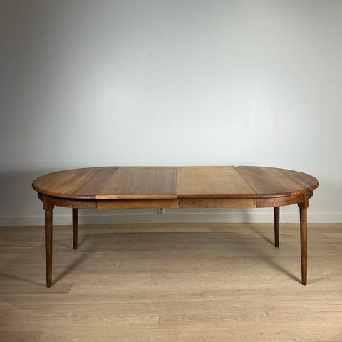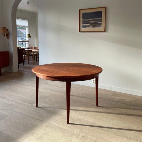 Upea vanha Askon kokopuinen jatkettava pyöreä vintage tiikki ruokapöytä 1960-luvulta.