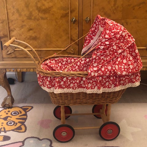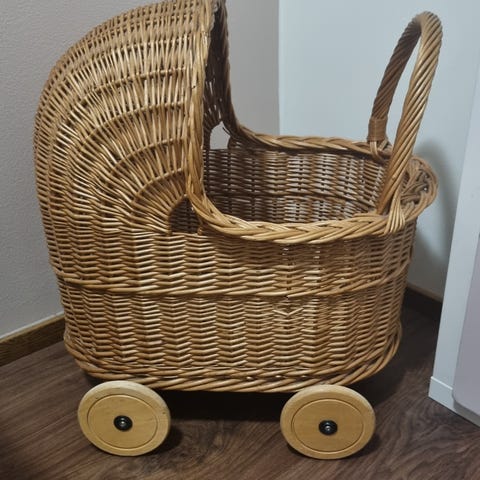 Myydään tarpeettomana vanhat kunnostetut rottinkiset nukenvaunut.