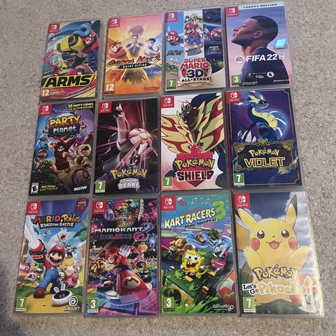 Myynnissä on 8 peliä switch 1. Pelit ovat