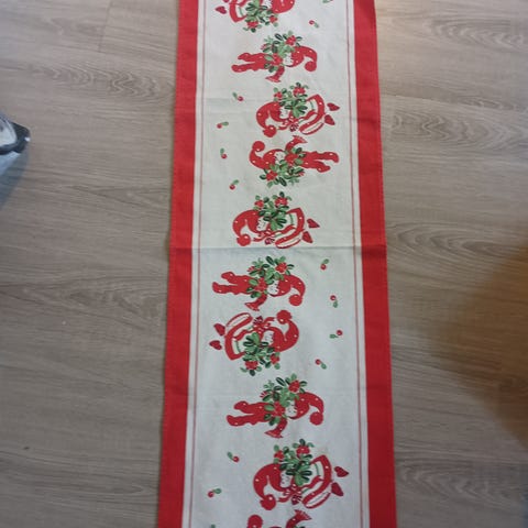 Joululiina, hieman likatahroja, punainen kaunis pöytäliina. Nouto Kamppi tai postitus
