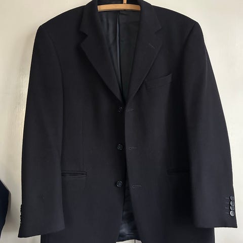 Ruskea villakangastakki. Takissa ei ole merkittynä kokoa, noin L/XL. Malli on 183cm pitkä.