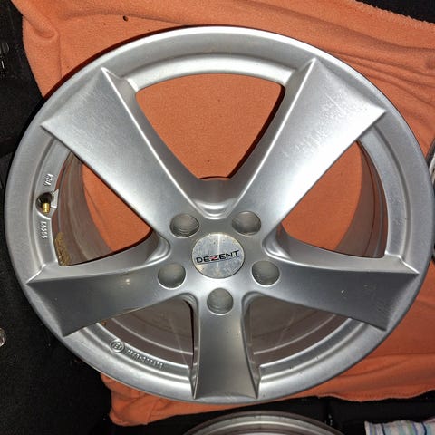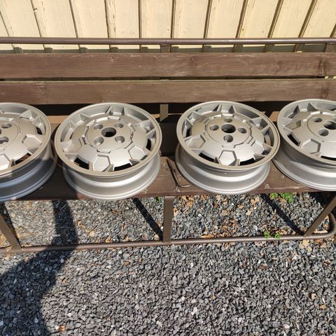 Vanteet asiallisessa kunnossa, ja päällä vanhat Michelinin kumit. Täysi sarja vanteille sopivia alkuperäisiä kiinnitysmuttereita!