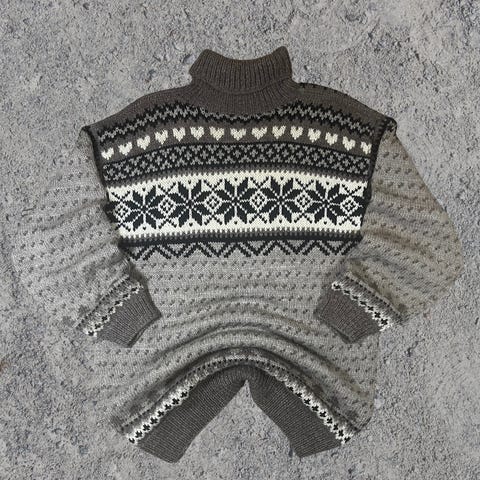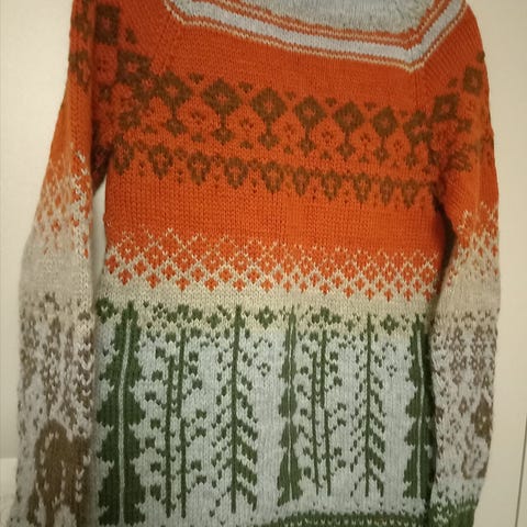 Pikkuinen reikä oikeassa hihassa, jonka mahdollinen korjaaminen jää taitavammalle. Tummansininen. Ilmeisesti unisex; ainakin on just samanlainen kuin miehen armeijaneuleet.