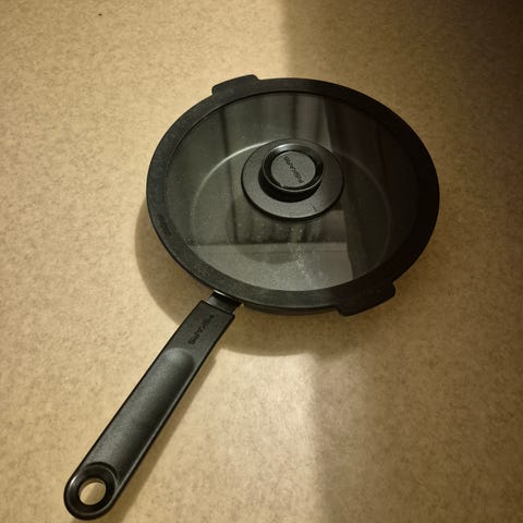 Todella vähälle käytölle jäänyt, teflonissa muutama hento viiru kuitenkin. Ja sivuilla tummumaan.