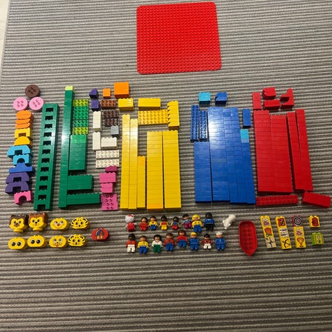 Yhteensä 458 palaa DUPLOja ja iso alusta. Kuvissa tarkemmin (n. 28 tyyppiä tai eläintä, 13 avoneuvoa, n. 300 peruspalikkaa ja loput erikoispaloja.) Mieluiten nouto. Laatikot eivät sisälly kauppaan.